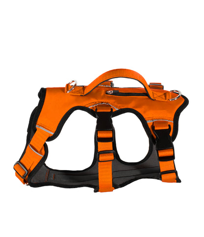 Pensado para montaña o ciudad, el arnés TrekRover 3 color naranja combina visibilidad y rendimiento. Su diseño de tres correas y seis puntos de ajuste brinda un calce preciso que libera los hombros y evita roces en axilas. El panel acolchado con espuma de celda cerrada y malla transpirable aporta estabilidad sin volumen y minimiza la rotación en terrenos difíciles. Para control extra, integra manija superior para asistir o levantar al perro. Detalles pro: cinta reflectiva 360°, hebillas laterales de liberación rápida y bolsillo para placa de ID o localizador. Poliéster resistente, de secado rápido y hecho para durar.
